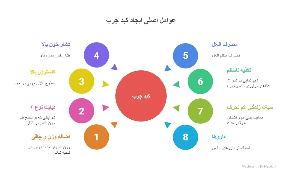 کبد چرب معمولاً در اثر ترکیب چند عامل ایجاد میشود.